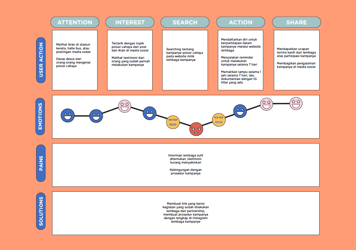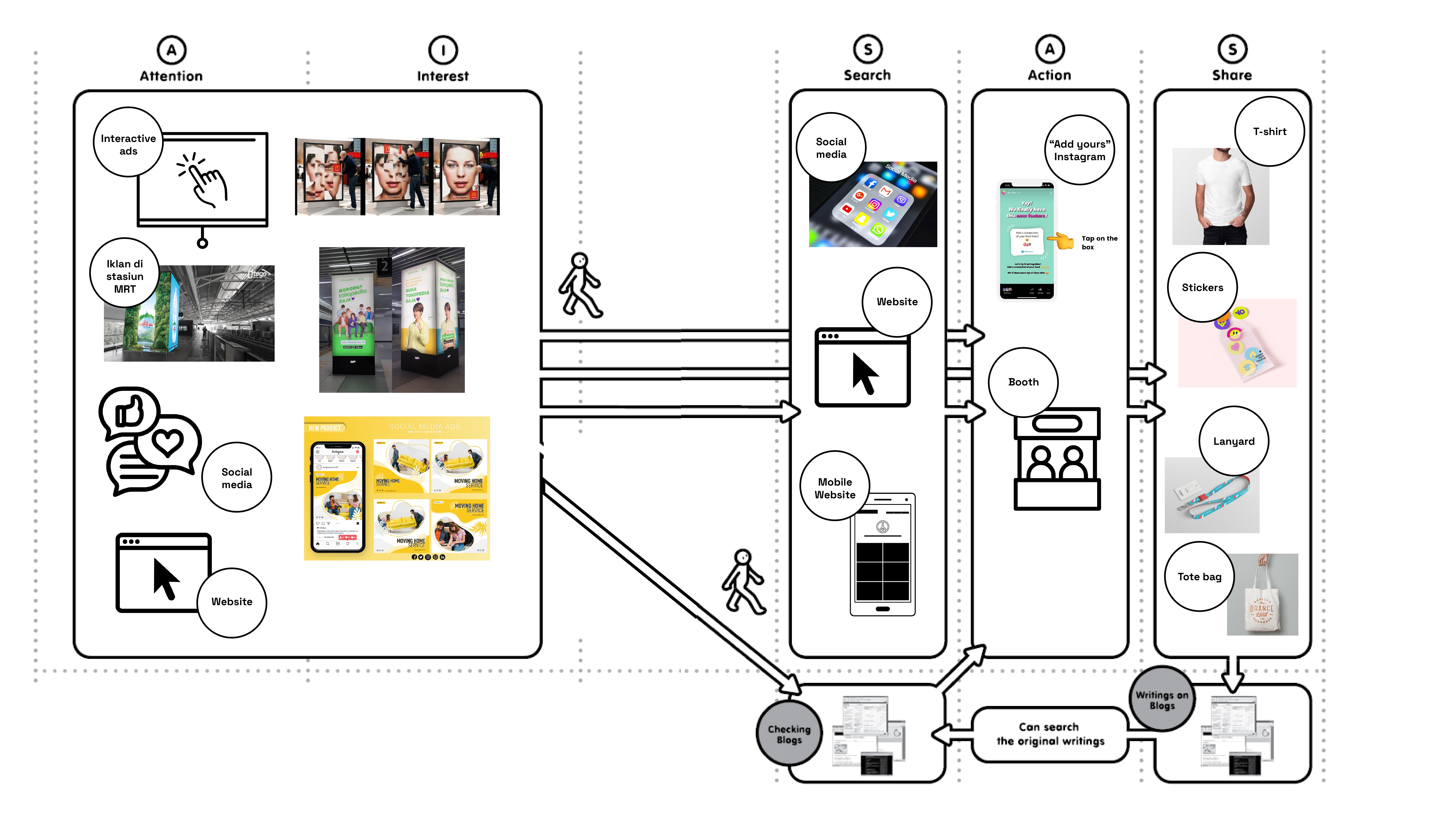 This is a glimpse of the AISAS strategy elaboration by using a table. I will give you the diagram instead to clarify everything.